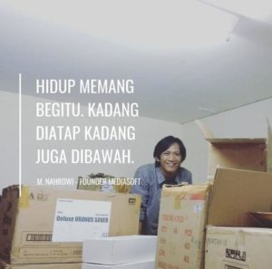 Kami pernah bersusah-susah, bekerja 20 jam tidak tidur untuk sekedar mempejari bagaimana sistem ini bisa berjalan dengan baik, menemukan kode-kode yang tidak pernah selesai, oh tidak itu masih terlalu keren. kami pernah jadi kuli angkut barang, untuk mengemasi barang-barang kami untuk dijual, mengangkat dan menaruhnya digudang.. ini bukan pekerjaan yang ringan dan keren bukan? kebanyakan orang memilih untuk pergi dari pekerjaan ini, karena bukan levelnya. namun bagi kami, mungkin ada hal yang bisa kami pelajari dari sini, iya benar sekali.. foto ini menunjukkan sesuatu, bahwa kami sedang kelelahan mengangkat barang-barang dengan bobot 20kg dari lantai ke lantai lainnya, hmm… kami ingin kesal sebenarnya, karena kenapa harus kami yang memindahkan barang-barang itu? kami bukan bekerja sebagai kuli angkut atau kuli bangunan?